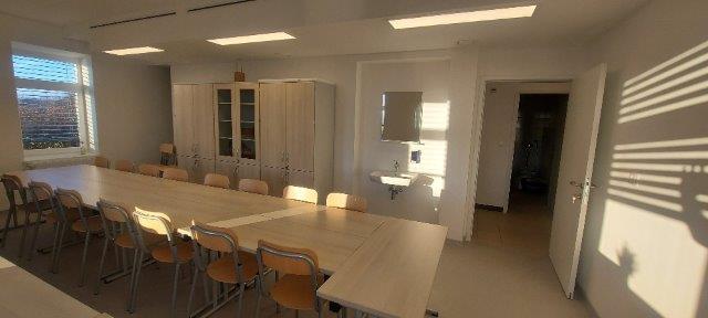 Učilnica z 30 sedeži in masko kurenta.