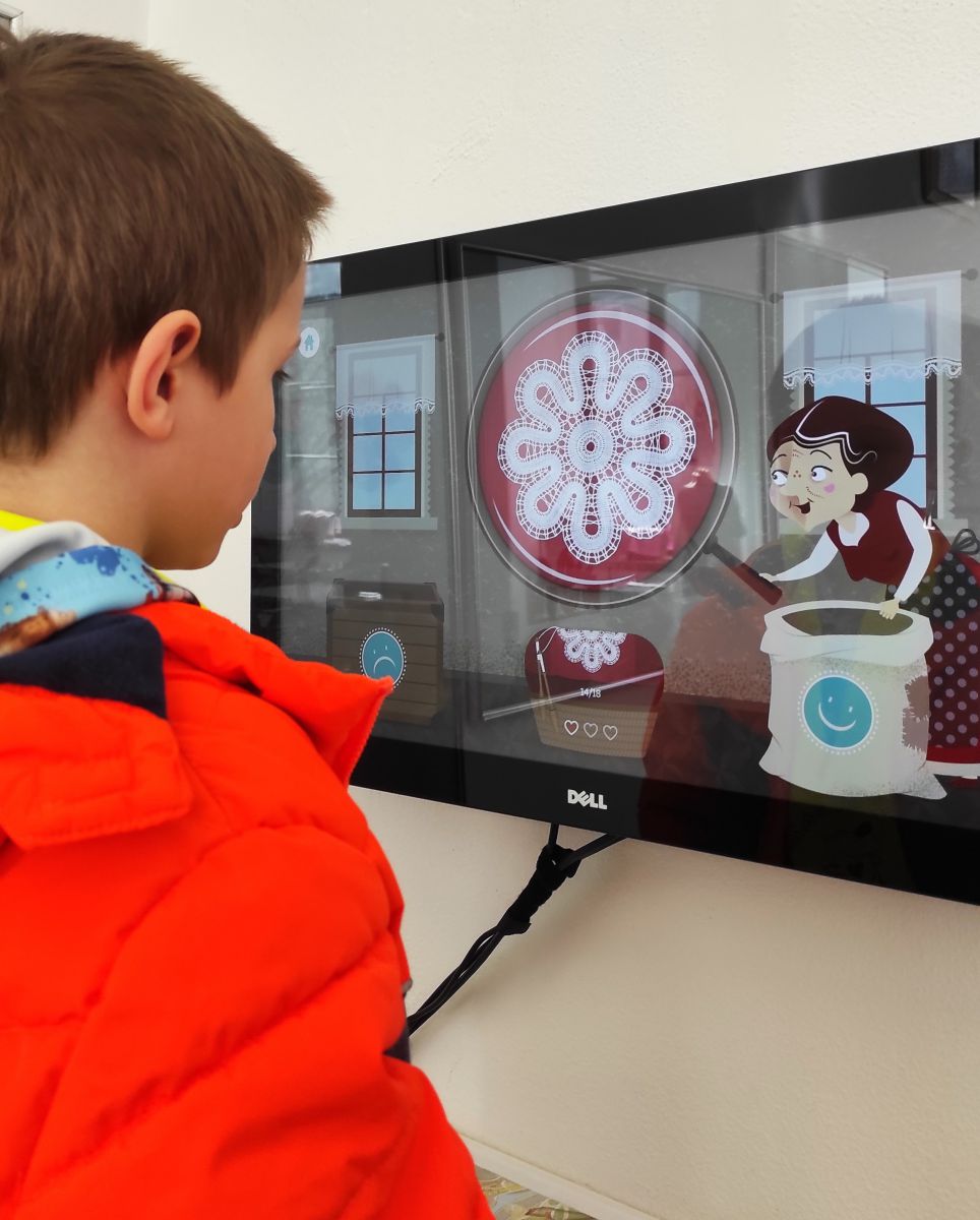 - Uporaba zabavne poučne aplikacije o tihotapki Melhiorci, kjer obiskovalci razlikujejo med vzorcem in čipko, razberejo razlike med kakovostno in nekakovostno sklekljano čipko.